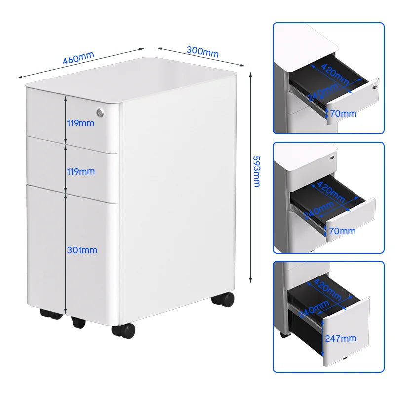 三層抽屜設計,提供充足的儲存空間,可輕鬆分類存放文件、文具和辦公用品。讓您的辦公空間井然有序,提高工作效率。